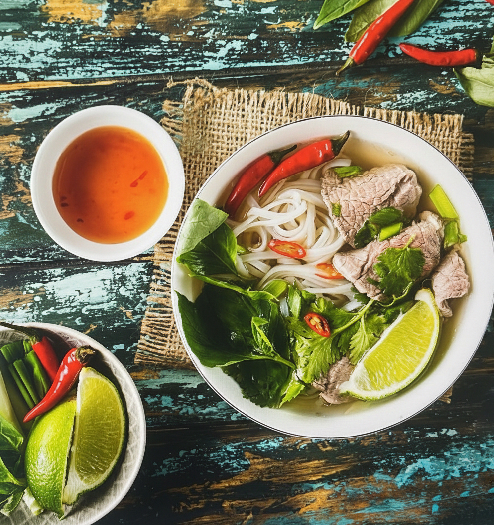 Pho ist das berühmteste Gericht der vietnamesischen Küche – eine kräftige, klare Suppe, die traditionell schon zum Frühstück gegessen wird.